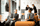 Bar seating area nearby food buffet in Lufthansa airport lounge Frankfurt